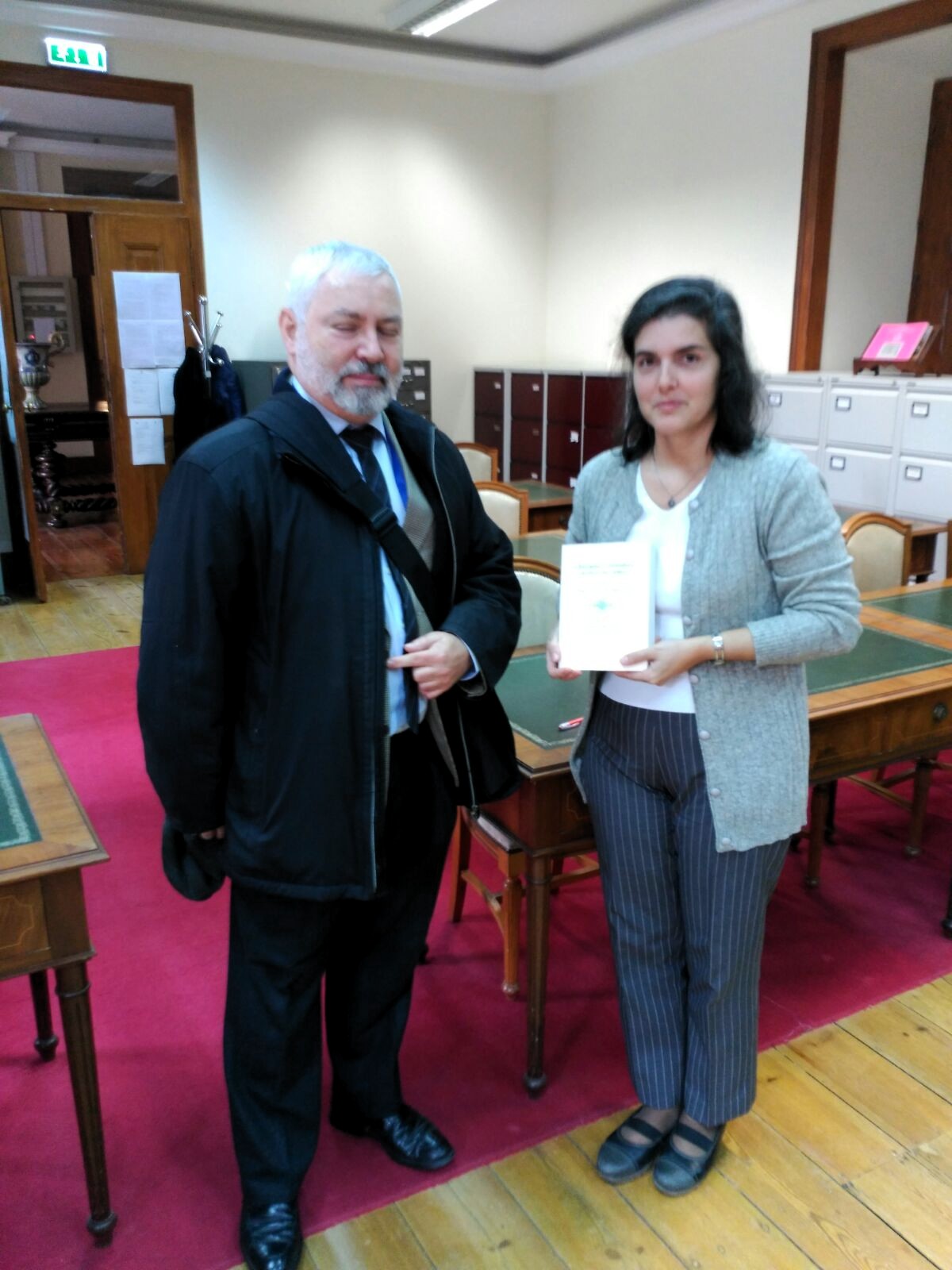 A sexta-feira de manhã movemos-nos para a Academia de Ciências de Lisboa, situada no Bairro Alto, perto da Rua do Século, nomeada pelo jornal que foi lá publicado. Lá fomos recebidos por uma amável bibliotecária a quem fizemos entrega de um exemplar do Oplosophia de Figueiredo, recebendo em troca profusos parabéns e agradecimentos pelo trabalho realizado.