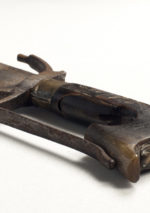 The hilt, with its combination of iron quillons and knuckle bow, gives good protection to the hand. The shape of the handle facilitates gripping it, allowing the insertion of the pinky in the hollow formed between the grip and the “lion´s head” on the bottom. It also favours handling the sword as a saber, that is, placing the thumb in line with the back of the blade.Both morphological features of the quillons and the grip, as well as the material it´s made of, indicate that this is a nimcha from the North of África. Besides that, the blade is almost straight, slightly curving to the back which, along with its length and tha lack of armorer´s brand or other distinctive marks, make us think that it´s of local manufacture.
