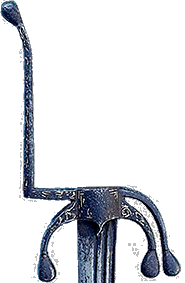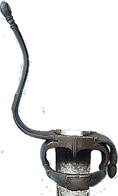 - Description: fore forward facing quillon, rectangular section knuckle bow attached to the end of the grip, and two upper quillions facing forward too (the second of them is actually broken).